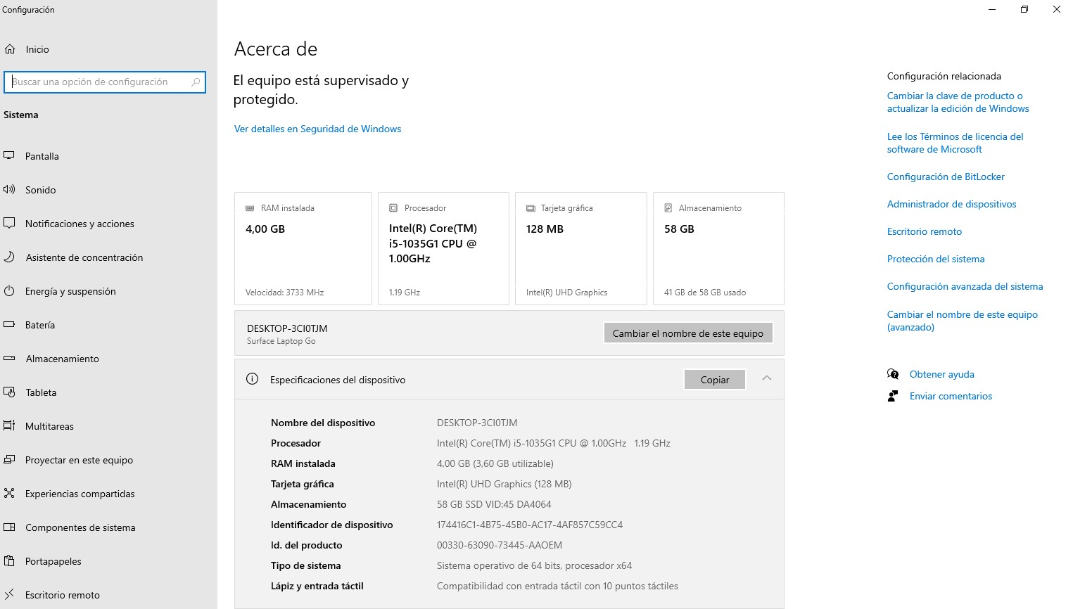 ✅ Almacenamiento: 64 GB SSD (aprox. 58 GB utilizables)